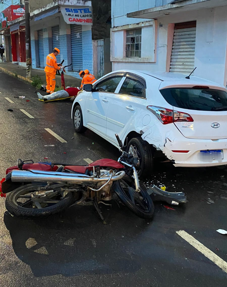 Por volta das 05h, o Corpo de Bombeiros foi acionado para prestar socorro em uma ocorrência na qual uma motocicleta colidiu violentamente contra a parte traseira de um carro que estava estacionado na via pública.
