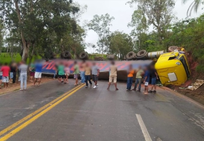 Tombamento de carreta carregada com cerveja interdita rodovia entre Areado e Alfenas