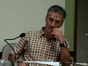 Acima, os vereadores Cheta (com a mão na boca) e Ratinho (lendo) e o secretário Lito (de gravata)