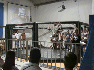 Está tudo pronto para a competição do MMA. A estrutura dentro do centro de treinamento de Carlos Camburão oferece arquibancadas, camarote e telão para os apreciadores das artes marciais.