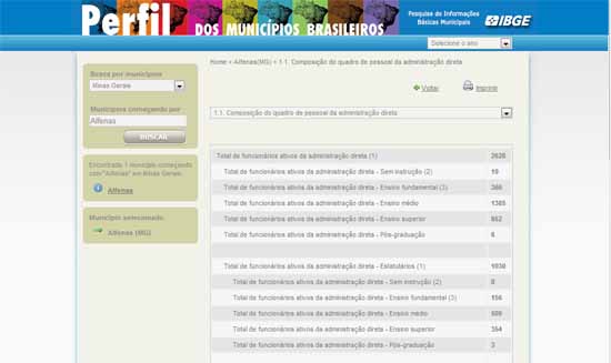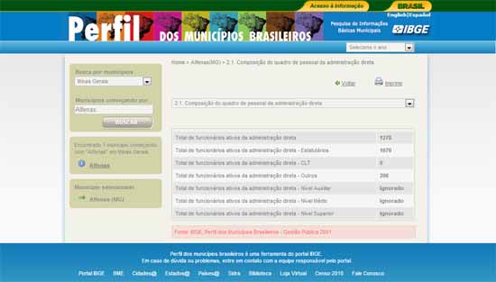 O número de servidores públicos do município subiu mais do que o dobro em dez anos. Porém, o número de concursados caiu, cedendo espaço para o aumento de vagas com características temporárias (como comissionados, contratados por tempo determinado, estagiários e demais trabalhadores sem vínculo permanente). É o que revela o Perfil dos Municípios Brasileiros 2011, elaborado pelo IBGE (Instituto Brasileiro de Geografia e Estatística).