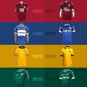 De acordo com os modelos, os torcedores do Palmeiras brincam e acusam os corintianos de copiarem as cores de camisas lançadas pelos alviverdes. E até brincam que o próximo lançamento alvinegro será nas cores verde e branco.
