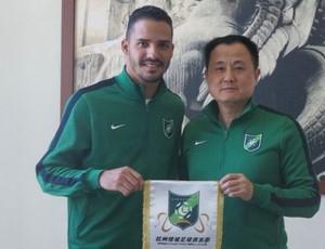 Enfim, o atacante Anselmo Ramon teve a transferência concluída para o futebol chinês. O jogador foi apresentado, nesta sexta-feira, pelo Hangzhou Greentown, posando para foto com um dirigente do clube asiático. A proposta oficial ao Cruzeiro chegou no dia 21 de janeiro, mas só agora o jogador foi apresentado.