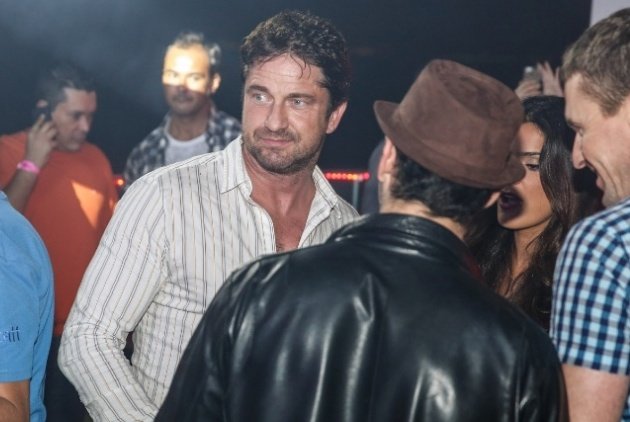 Gerard Butler se aproxima de modelo brasileira durante festa