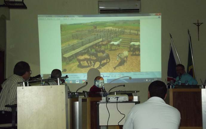 Fotos de cavalos sendo apreendidos foram exibidas em plenário (Foto: Alessandro Emergente)