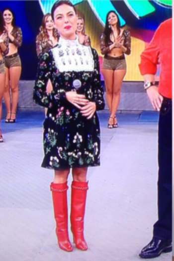 Teve gente perguntando se foi o próprio apresentador, que tem gosto duvidoso para se vestir, que a ajudou a escolher o figurino... Maldade, viu?