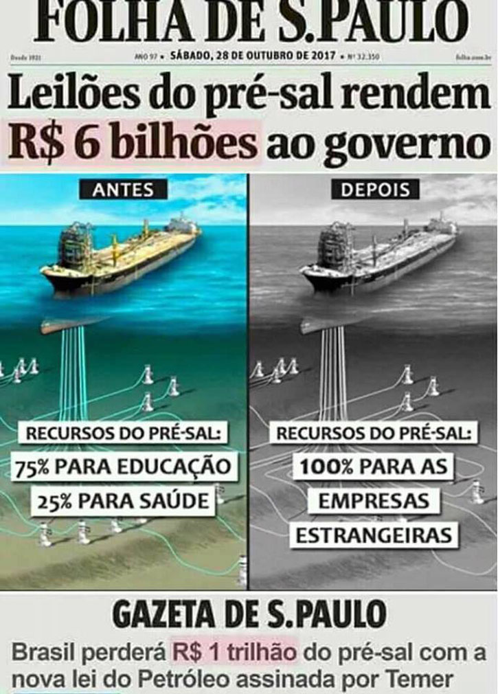 Intimamente correlacionado aos altos preços dos combustíveis e com os motivos para a jogada política que levou o atual governo ilegítimo ao poder está a venda do pré-sal, que em síntese, é petróleo. Deixo os seguintes recortes de jornais explicarem melhor o que aconteceu: