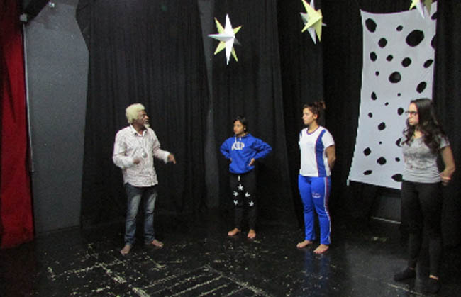 A oficina de teatro é um projeto que tem a frente o ator Anselmo Cesário, que coordena turmas adulta e infantil.