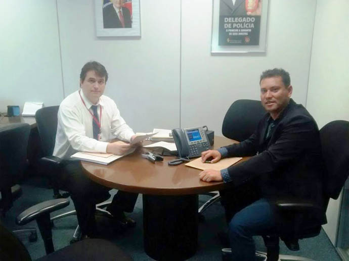 No início de agosto, Vander Cherri (à direita) esteve em Belo Horizonte onde se reuniu com o secretário adjunto de Defesa Social do Estado, Rodrigo Melo Teixeira (Foto: Ascom/Prefeitura de Alfenas) ​