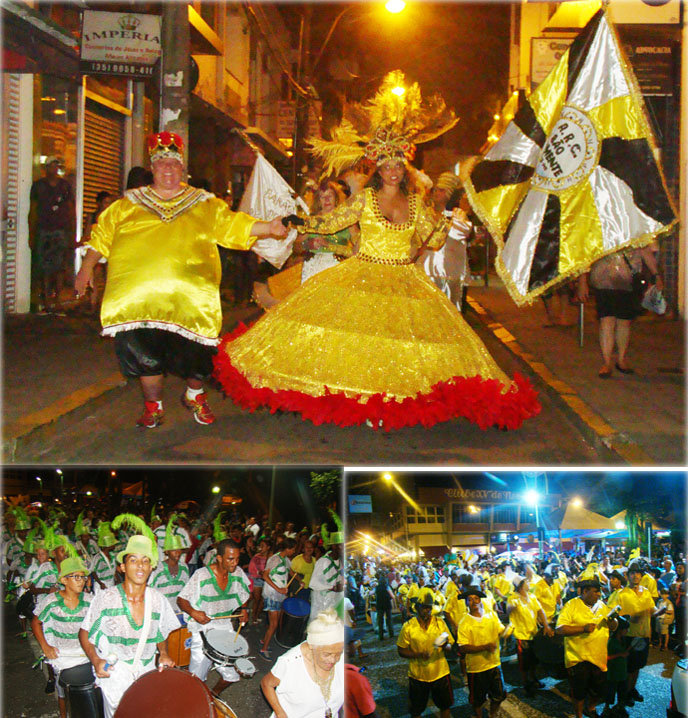 Os blocos e escolas de samba também atraíram a atenção das famílias na noite de domingo e de terça-feira. Esse ano os desfiles incluem Unidos dos Santos Reis, Barão do Rio Branco e São Clemente. São dois desfiles em duas noites. A primeira foi no domingo e, na terça, o samba voltou a ser apresentado.