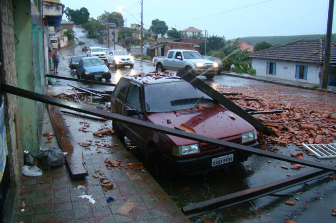 Na rua Alferes Domingos Vieira, no centro, o muro de um estacionamento acabou caindo. No Jardim São Carlos, na rua Alberto de Oliveira, uma casa foi interditada após queda de parte da residência.