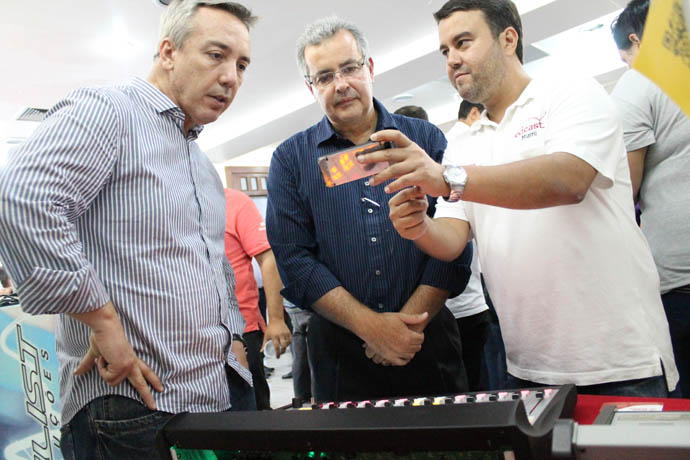 À esquerda, o tesoureiro Luciano Pimenta e ao centro, o presidente