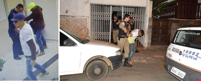 Os suspeitos foram presos em Alfenas. Eles foram reconhecidos através de imagens do circuito interno de monitoramento da agência bancária de Serrania (Fotos: Reprodução/Polícia Militar e Polícia Civil)