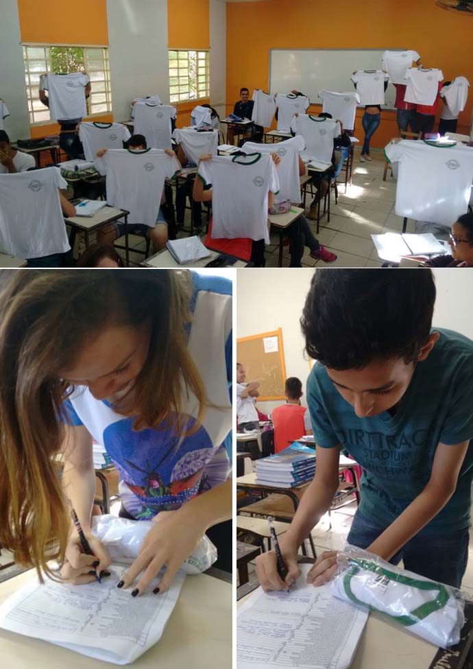 As camisetas foram distribuídas gratuitamente aos alunos do período da manhã e da tarde. Somente as turmas de 3˚ ano não receberam o uniforme, uma vez que esses estudantes deixarão o ensino médio no final deste ano.