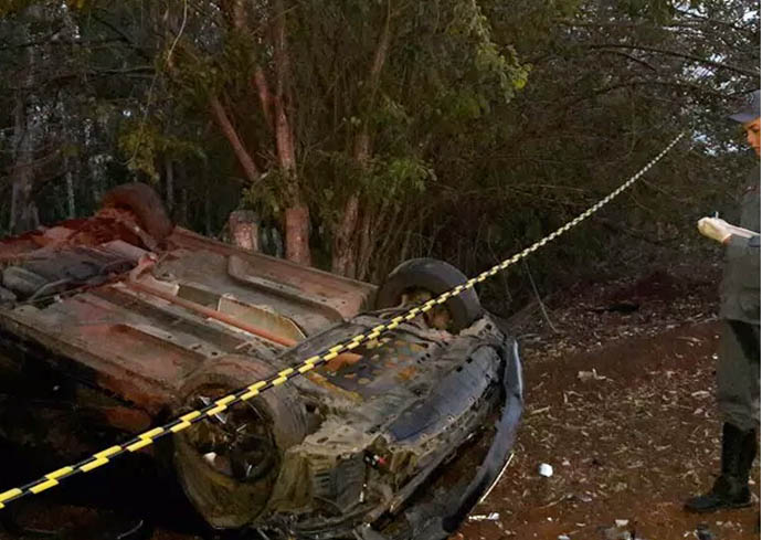 O motorista foi arremessado para fora do carro após capotar na BR-369 (Foto: Corpo de Bombeiros)