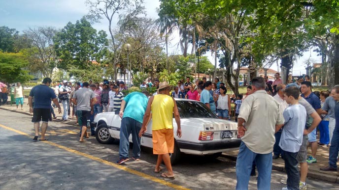 Um GM Monza, que estava estacionado em frente a pick-up, teve a sua parte traseira danificada. Porém, pessoas que passavam pelo local quebraram o vidro do automóvel e o retiraram da área de perigo.