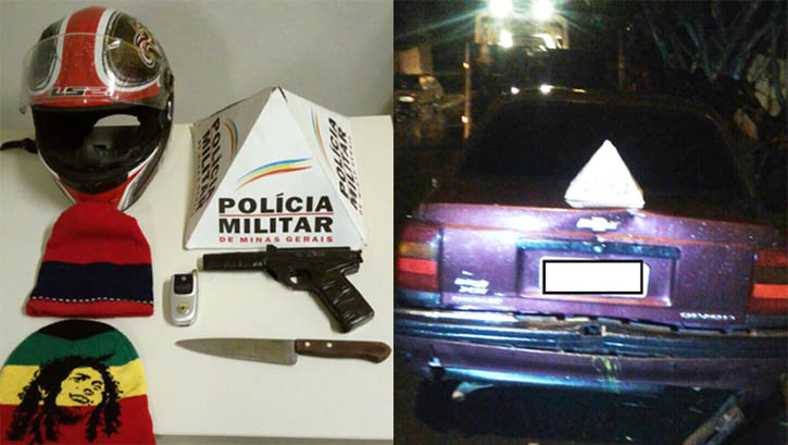 Uma réplica de pistola e uma faca foram localizadas no solo próximo ao local onde os adolescentes foram abordados. Já o GM Ômega (cor vermelha) foi localizado abandonado nos fundos do bairro Jardim Primavera e, no interior do veículo, estavam duas blusas de moletons, um capacete e um aparelho celular.