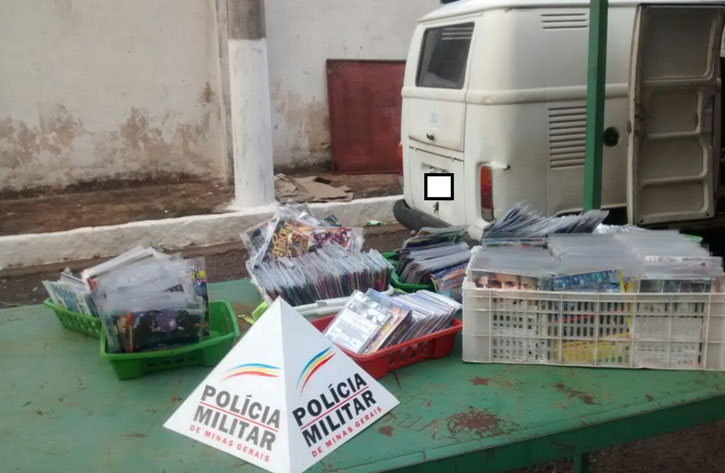 A equipe do Tático Móvel da Polícia Militar apreendeu, na noite de segunda-feira, 1.300 DVDs piratas durante um patrulhamento na Praça da Saudade, local onde ficam bancas de comércio ambulante.