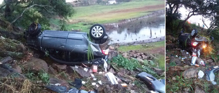 Um veículo caiu em uma ribanceira de aproximadamente 10 metros na noite de sábado.