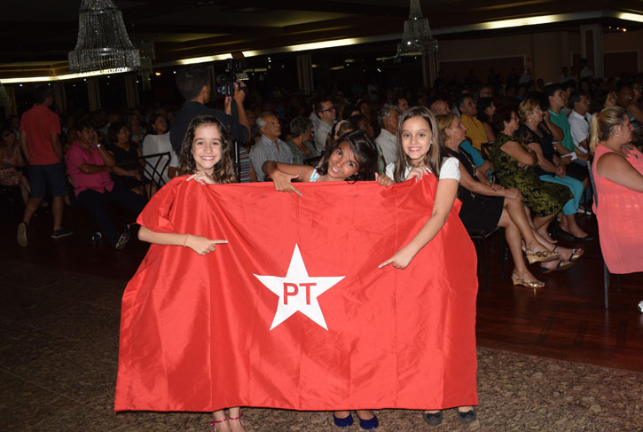 Crianças exibem bandeira do PT durante a cerimônia de posse (Foto: Alessandro Emergente)