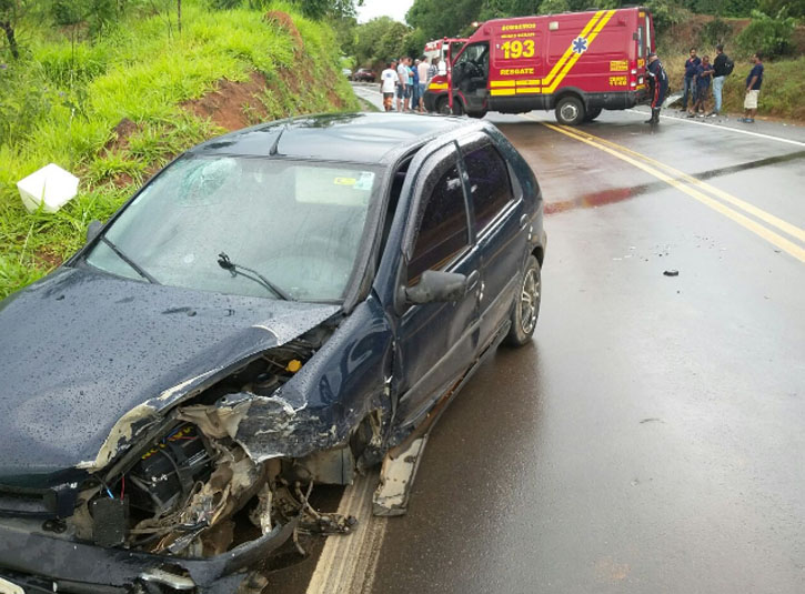 Dois carros bateram de frente no Km 169 da BR- 369, entre Alfenas e Campos Gerais.