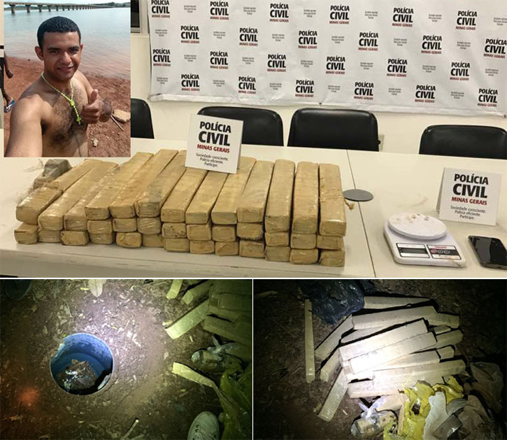 Após serem interrogados, o homem e o menor disseram aos policiais que teriam recebido R$ 300 reais para buscarem as drogas, que estavam enterradas em um tonel de leite em um pasto, próximo a estrada rural que dá acesso ao bairro São Tomé. Os policiais foram ao local indicado e encontraram mais barras de maconha, chegando ao total aproximado de 30 quilos.
