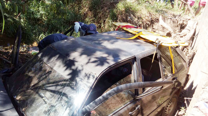 O motorista teria perdido o controle da direção e caído próximo ao córrego (Foto: Corpo de Bombeiros)