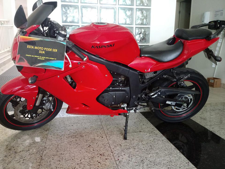 A motocicleta Kasinski Comet GTR 250 cc, sorteada pela Associação dos Voluntários Vida Viva, saiu para uma moradora de Alterosa.