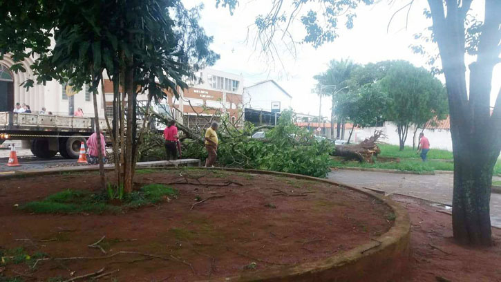 O vendaval, que iniciou junto com a chuva na tarde de domingo, destelhou casas, e provocou queda de grandes árvores pela cidade. Nos bairros Aparecida, Santa Rita, Jardim da Colina, Centro e na rua João Paulino Damasceno, ficaram todos sem energia por algum tempo. A força do vento arrancou diversos galhos de árvores e muitos deles caíram sobre a fiação elétrica, deixando diversos pontos da cidade sem luz.
