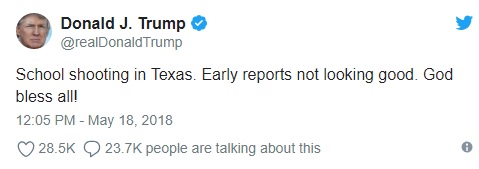 Trump também mencionou o tiroteiro no Twitter. "Deus abençoe a todos", disse.