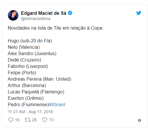 Nesse primeiro momento, a renovação promovida por Tite foi até menor do que a feita por Dunga na primeira convocação após o Mundial de 2014: manteve 13 jogadores e trouxe 11 novidades. Mas é natural, já que o atual treinador dá sequência ao trabalho, enquanto o ex-técnico iniciava o seu caminho após a saída de Felipão.