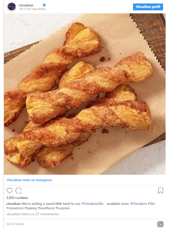 A Cinnabon achou que seria uma boa apostar no novo doce no cardápio, uma vez que a casa já oferecia outros tipos de sanduíches, como o com recheio de cream cheese. E parece que deu certo