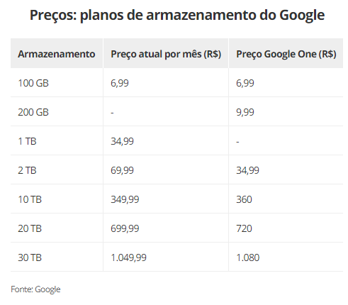 Ainda de acordo com o comunicado do Google, nas próximas semanas, todos os planos pagos de armazenamento do Google Drive terão um upgrade para o Google One. Essa mudança não terá efeito para os clientes corporativos do G Suite.