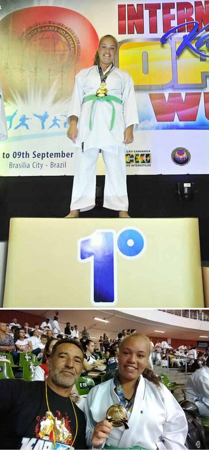 A atleta Thamires Vitória Santos, de 16 anos, conquistou medalha de ouro no Kumite (combate) no 25° Campeonato Brasileiro Interestilos da CBKI (Confederação Brasileira de Karatê Interestilos). A competição, realizada de 7 a 9 de setembro em Brasília (DF), reuniu mais de 1.500 atletas.