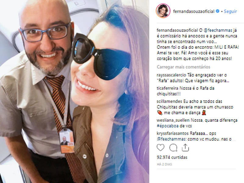 A surpresa aconteceu durante uma viagem da atriz. Em uma daquelas coincidências da vida, Fernanda pegou o mesmo voo que Felipe e o encontrou por acaso 21 anos depois do sucesso de "Chiquititas". O ex-Chiquitito agora exerce uma profissão bem diferente da vida artística e se tornou comissário de bordo.