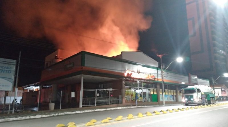 Fogo destrói parte de depósito de supermercado no centro de Pouso Alegre