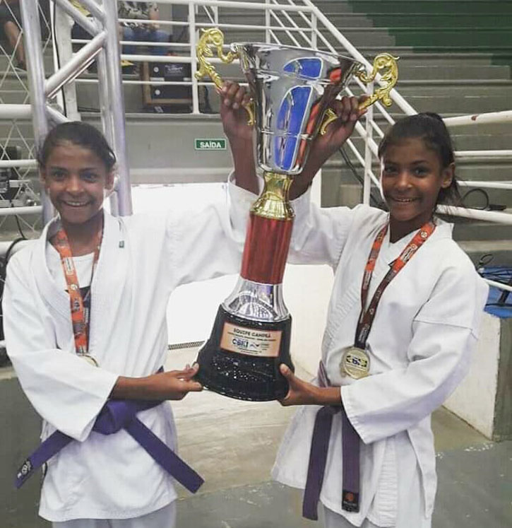 As gêmeas Vitória Oliveira e Gabriela de Oliveira, de 12 anos, conquistaram vitórias no Karatê no decorrer de 2018 em várias competições. Segundo informações repassadas a nossa reportagem pela mãe das atletas, entre as premiações estão as conquistas em novembro em Elói Mendes com Gabriela (campeã mineira em kata e vice-campeã mineira no kumitê) e Vitória Oliveira (campeã mineira em kumitê e vice-campeã mineira em Kata).