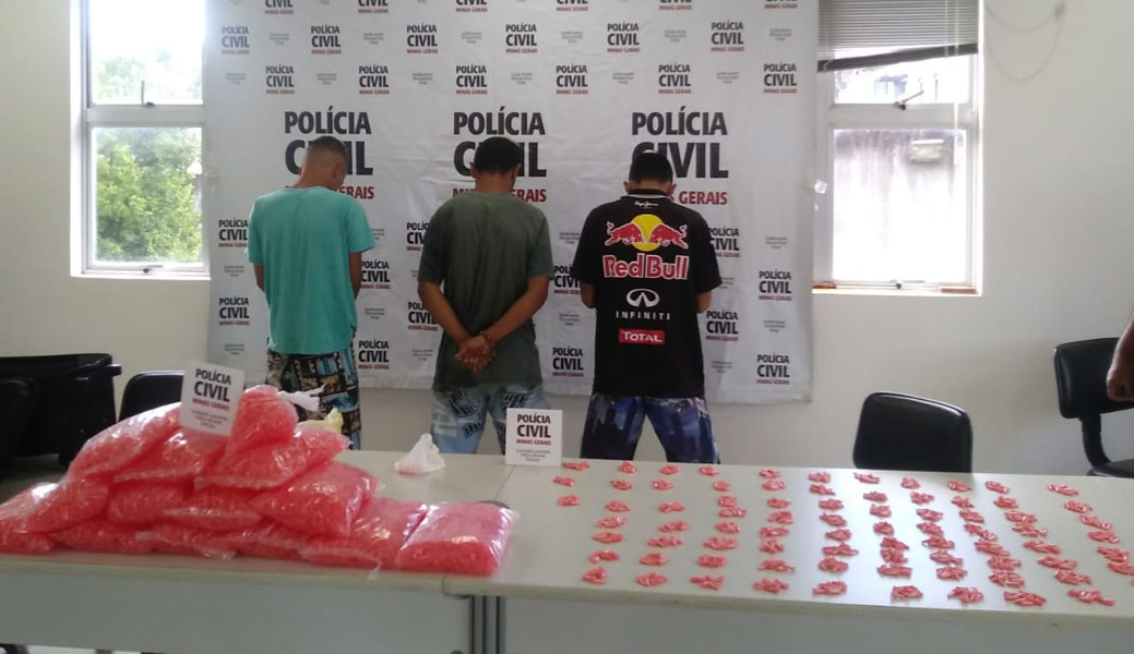 Os três suspeitos foram presos em flagrante delito por tráfico de drogas.