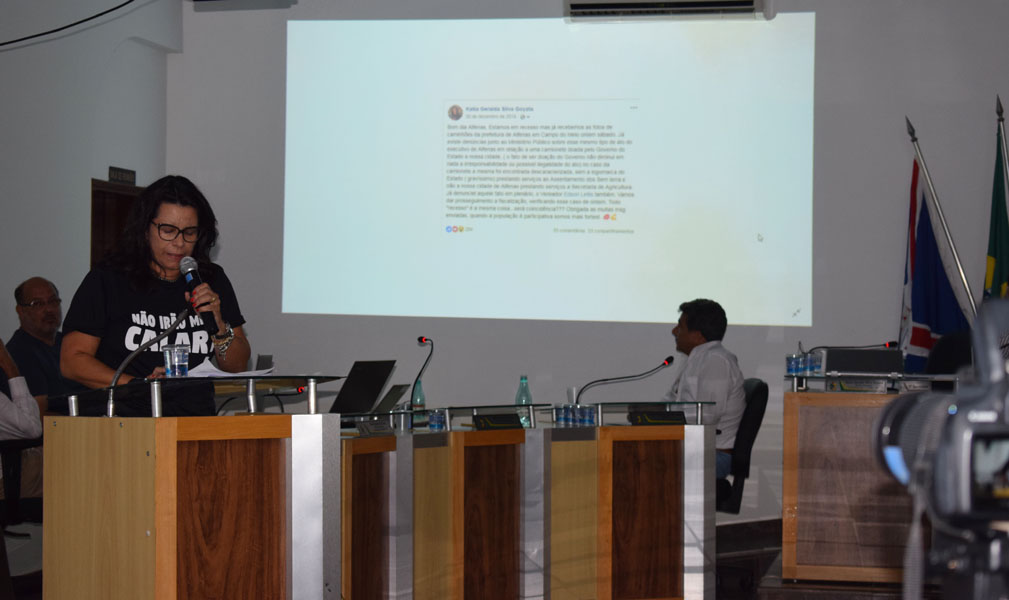 A Câmara Municipal instaurou, na noite de segunda-feira, uma Comissão Especial de Ética para apurar uma postagem nas redes sociais feita pela vereadora Kátia Goyatá (PDT). O post foi uma denúncia de que maquinário repassado pelo Estado à Prefeitura de Alfenas estaria sendo deslocado para acampamentos do Movimento dos Sem Terra, em Campo do Meio.