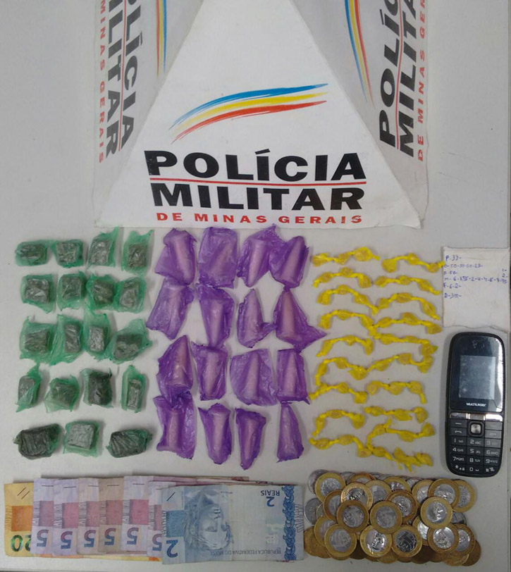 A Polícia Militar apreendeu 57 pedras de crack, 16 cápsulas com cocaína, 19 buchas de maconha durante uma abordagem na rua João Paulino Damasceno, no bairro São Vicente. A abordagem policial foi durante um patrulhamento, quando os policiais perceberam a atitude suspeita.
