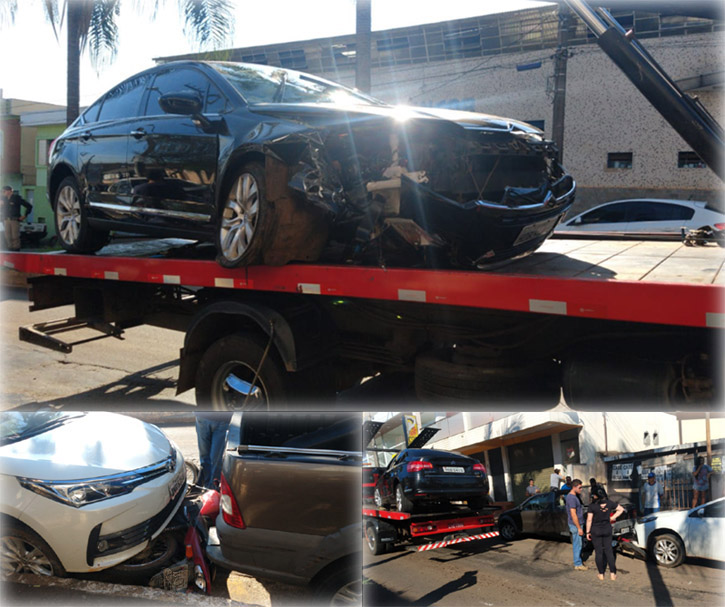 O motorista de um Cintroen perdeu o controle da direção, na manhã desta sexta-feira, e acabou atingindo uma moto CG-125cc e um Toyota Corolla, que estavam estacionados na avenida Governador Valadares. O motorista, que teria causado o acidente após sair de uma festa, fugiu do local, mas dentro do veículo foram encontradas latas de cerveja e uma garrafa de vodka.