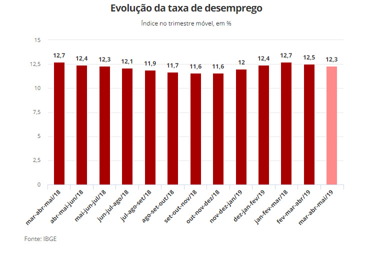 A taxa de desemprego no Brasil caiu para 12,3% no trimestre encerrado em maio, atingindo 13 milhões de pessoas, segundo dados divulgados nesta sexta-feira (28) pelo Instituto Brasileiro de Geografia e Estatística (IBGE).