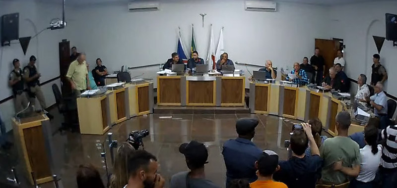 A reunião legislativa de segunda-feira foi extensa. Foram mais de quatro horas de reunião em um clima tenso, devido a manifestantes que foram ao Legislativo protestarem contra a Zeladoria Pública, aprovada em setembro. Uma licitação para escolha da empresa foi adiada na semana passada após vários questionamentos nas redes sociais.