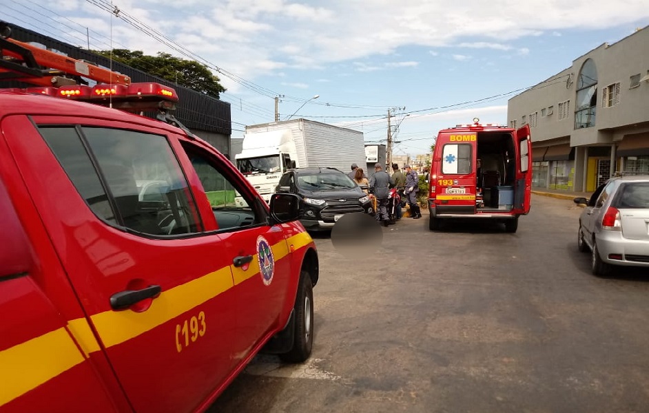 Acidente entre motocicleta e carro deixa mulher ferida