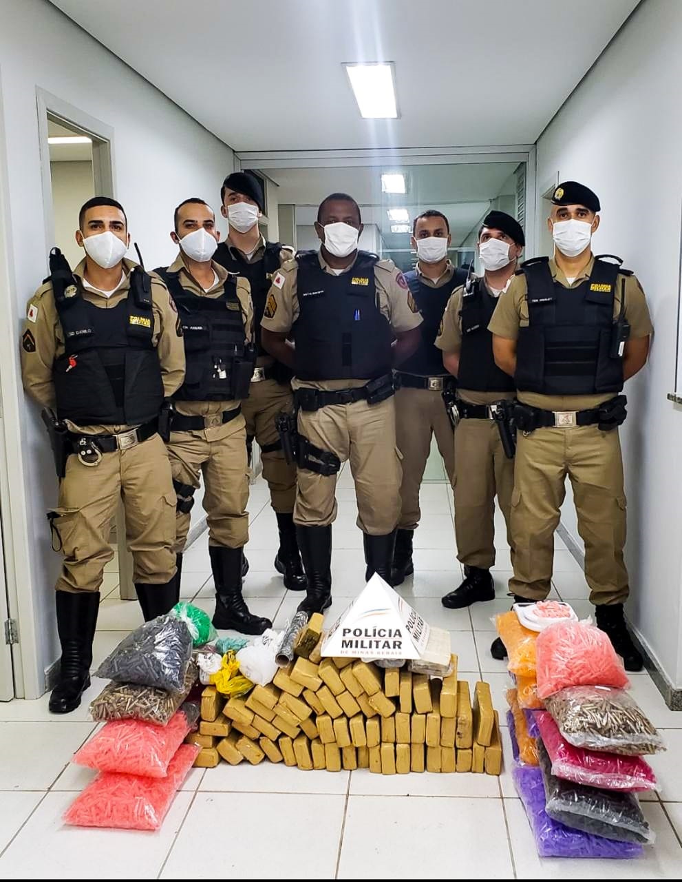 Durante as buscas, a PM encontrou 60 tabletes de maconha e outras 440 gramas da droga, além de 120g de cocaína em pó e 3 kg de pasta base. Também foram localizados 21 pinos cheios da mesma substância.