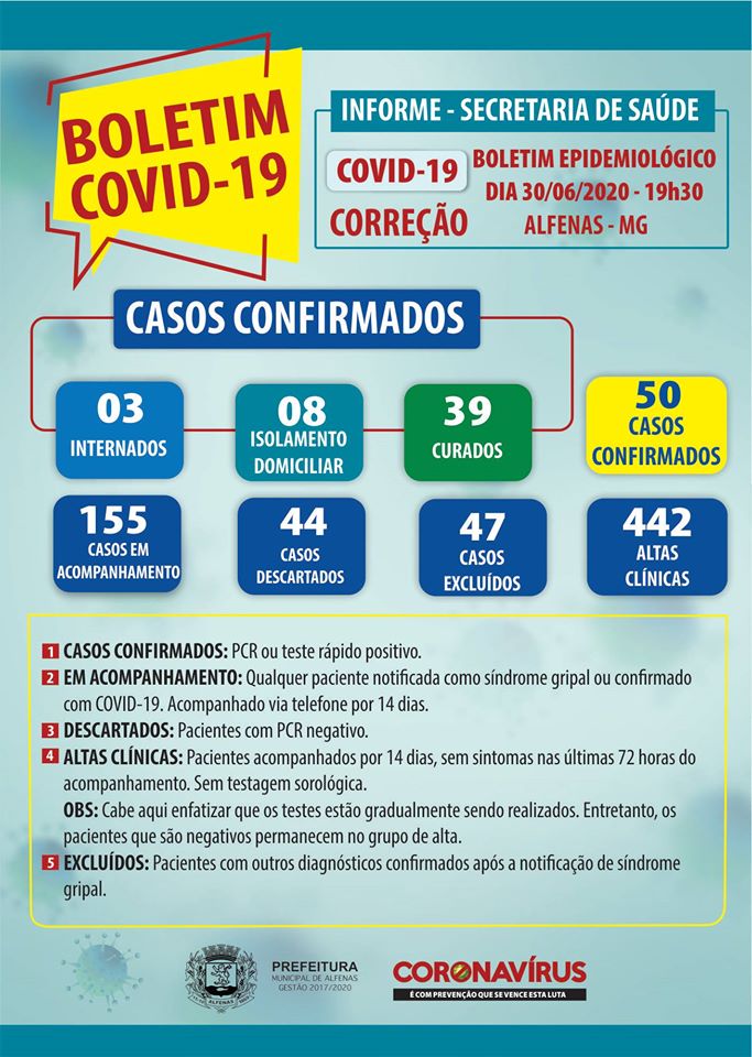 O documento vinha sendo divulgado toda sexta-feira, porém quando há alguma mudança significativa nos números a Prefeitura de Alfenas divulga boletins extras.