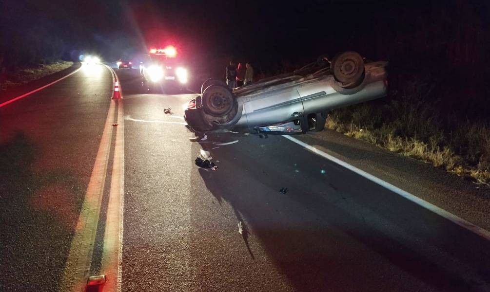 Carro capota na rodovia e casal é levado para o hospital
