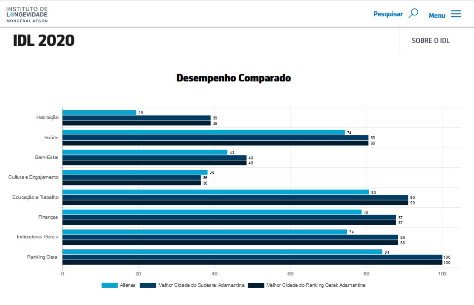 Alfenas aparece na 29ª colocação em um ranking nacional que aponta as melhores cidades do país para os idosos. O Índice de Desenvolvimento Urbano para Logenvidade (IDL) foi publicado pelo Instituto de Logenvidade Mongeral e é a segunda edição do estudo. A cidade manteve-se na mesma posição alcançada na edição anterior, publicada em 2017.