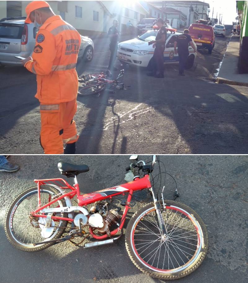 Um homem de 64 anos ficou ferido num acidente no final da tarde de sexta-feira. A colisão foi entre uma bicicleta motorizada e uma caminhonete S-10 no cruzamento da rua Rodolfo Prado com rua Américo Totti.