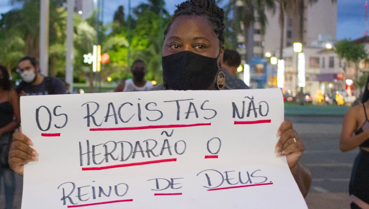 O protesto foi em apoio ao padre Rivas que foi vítima recentemente de atos de racismo.